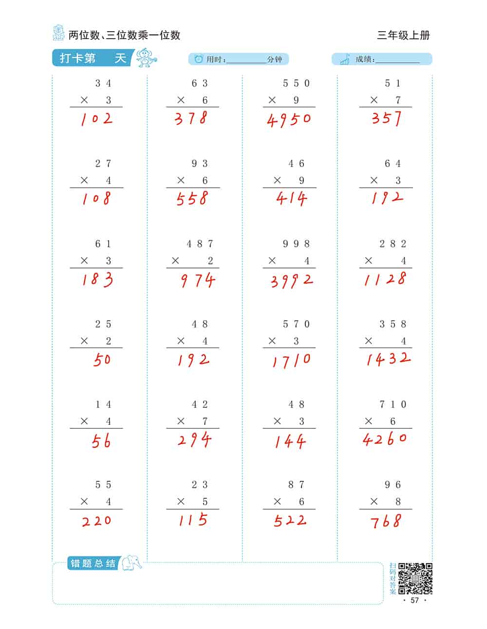 三年级数学口算天天练两位数乘两位数