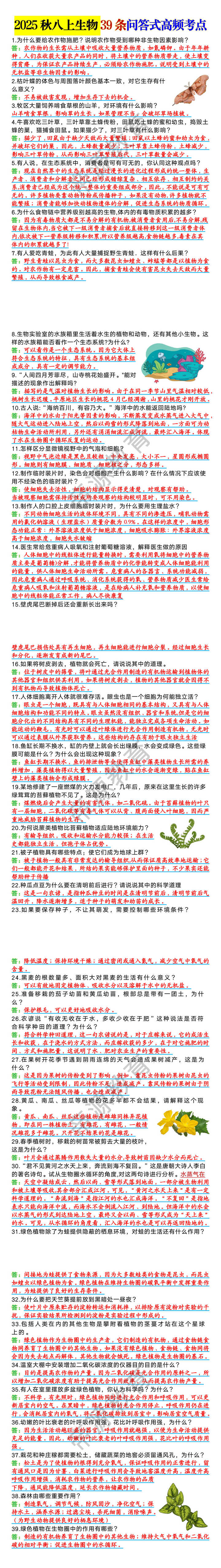 2025秋八上生物39条问答式高频考点