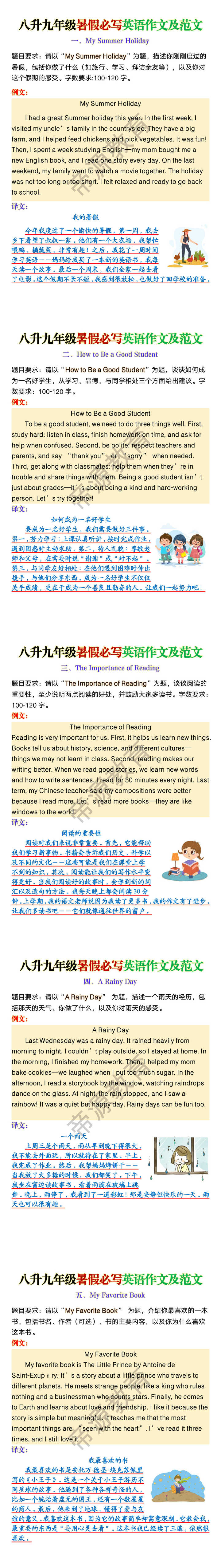 八升九年级暑假必写英语作文及范文