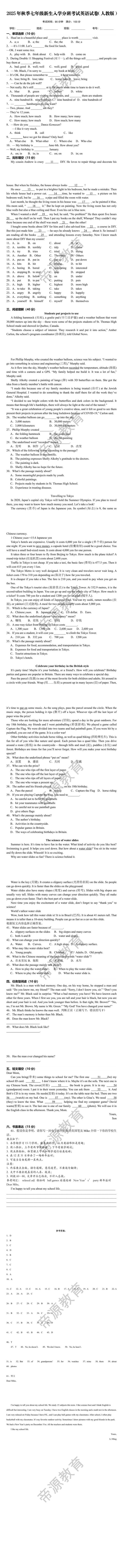 2025年秋季七年级新生入学分班考试英语试卷(人教版)