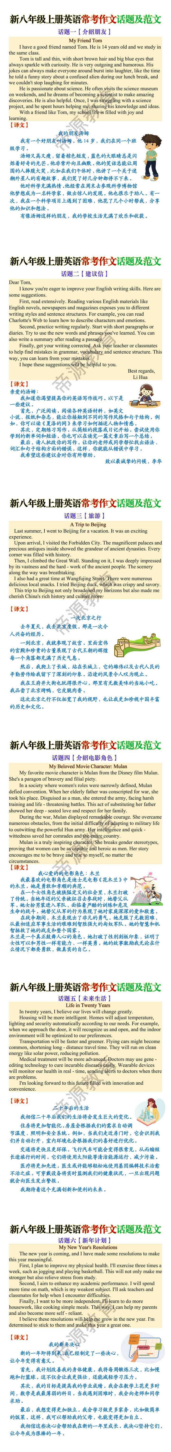 新八年级上册英语常考作文话题及范文