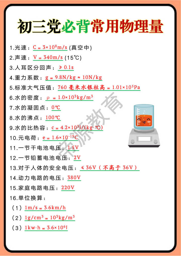 9.水的比热容:c=4.2×103J/(kg·℃)
