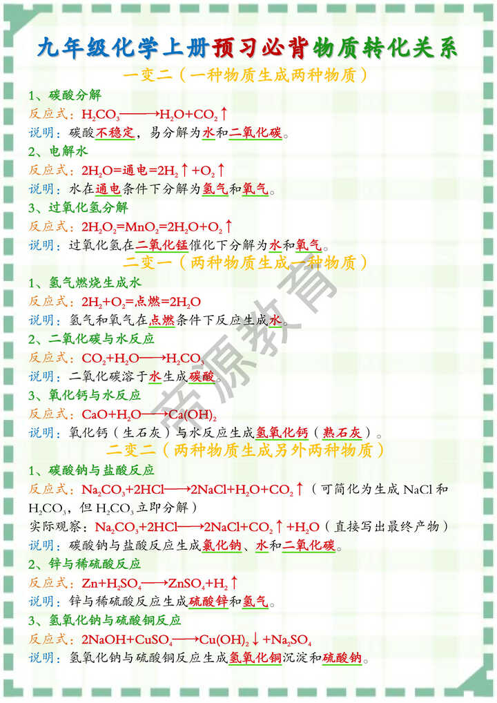 一变二(一种物质生成两种物质)