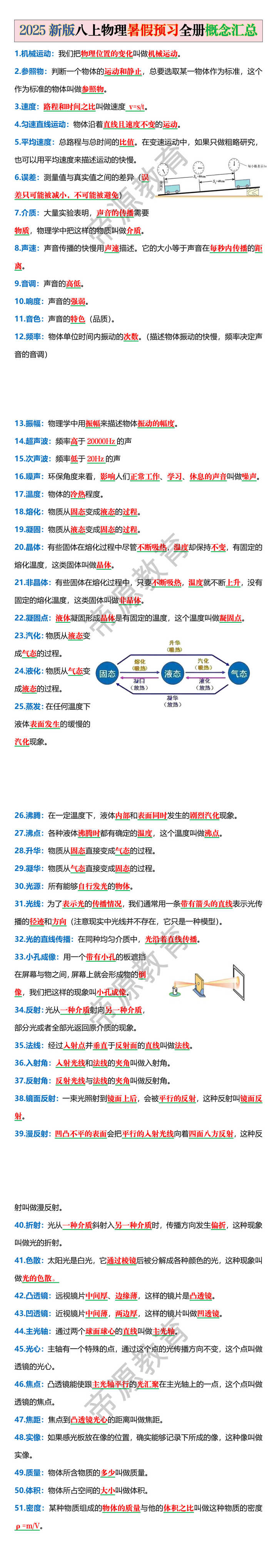 8.声速:声音传播的快慢用声速描述。它的大小等于声音在每秒内传播的距离。