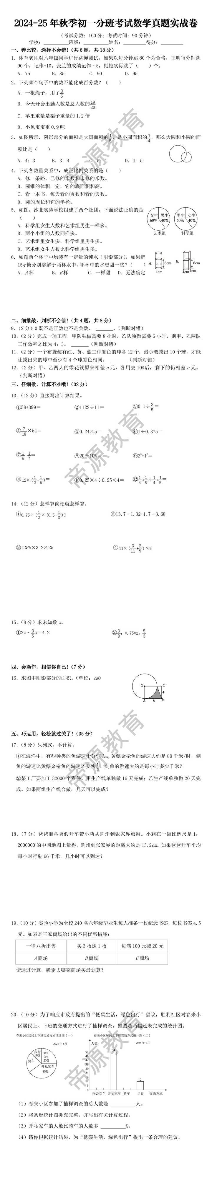 1.体育老师对六年级同学进行跳绳测试,如果以每分钟跳80个为合格,王明每分钟跳90个,记作+10。张兰的成绩记作﹣5,则她实际跳了( )个。