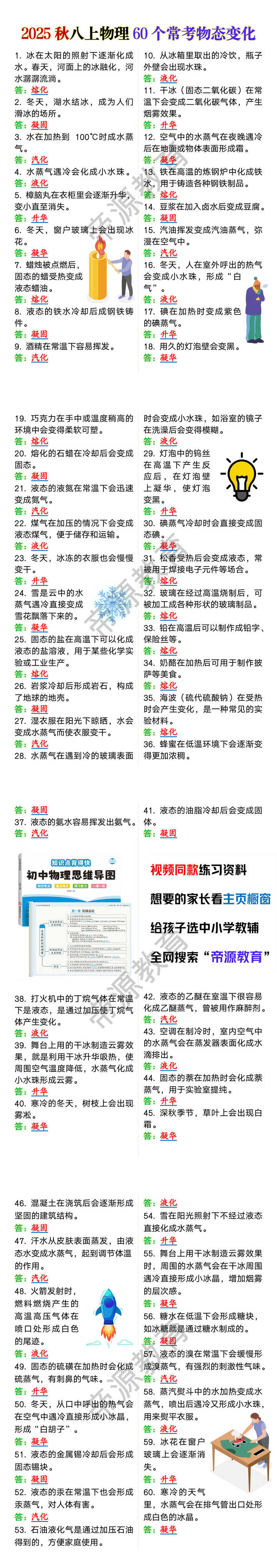 2025秋八上物理60个常考物态变化