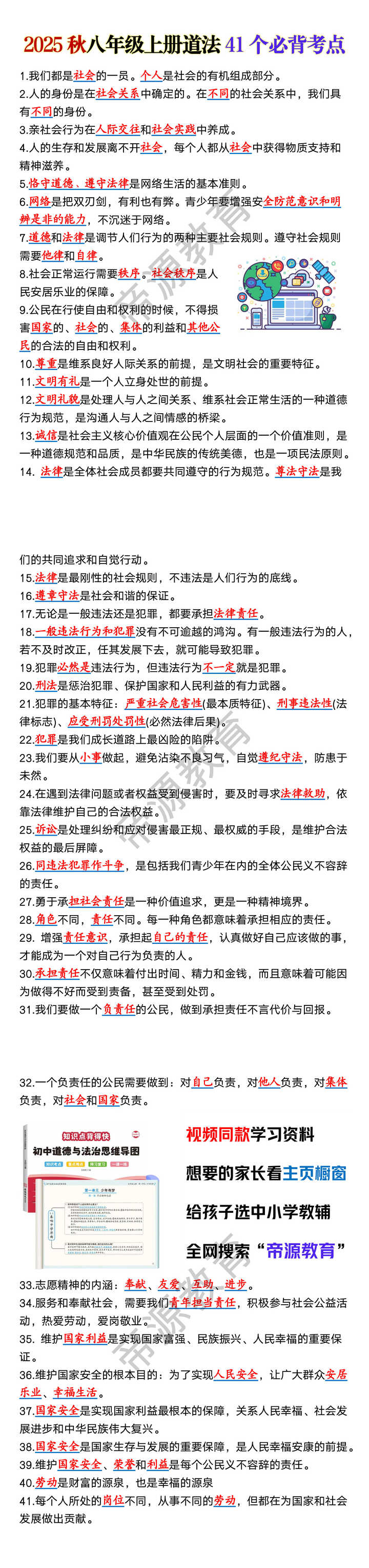 8.社会正常运行需要秩序。社会秩序是人民安居乐业的保障。
