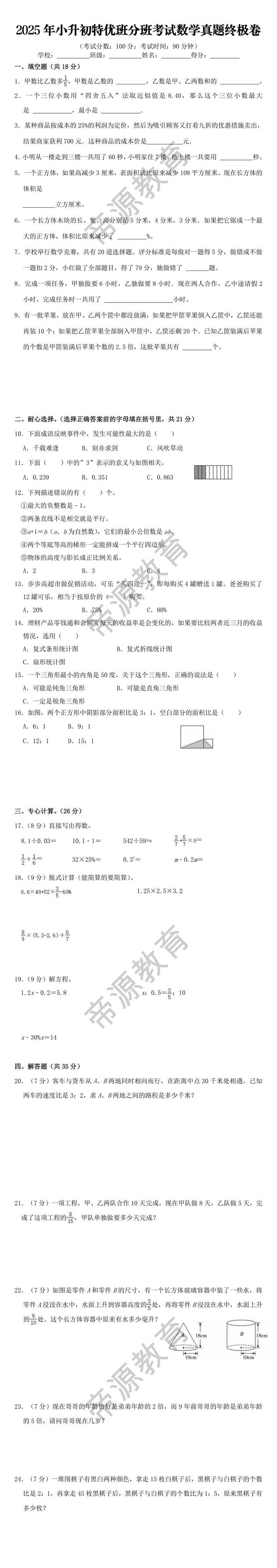 7.学校举行数学竞赛,共有20道选择题。评分标准是每做对一题得5分,做错或不做一题扣2分,小红做了全部题目,得了79分,她做错了 题。