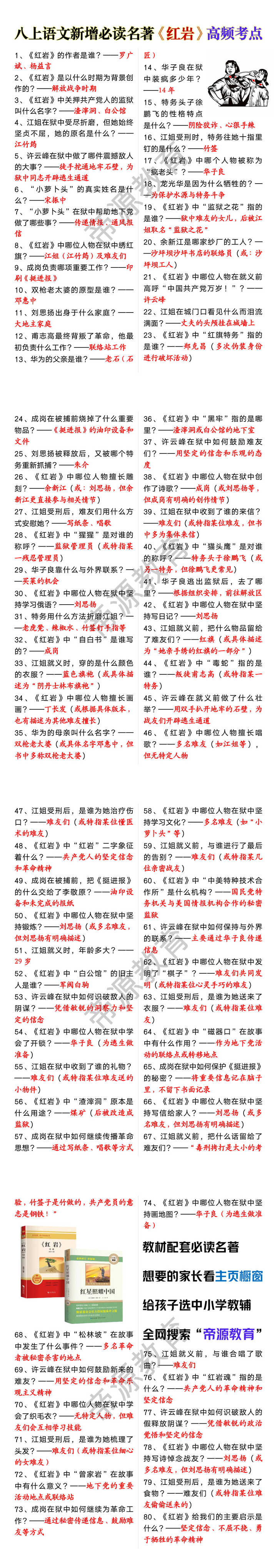 八上语文新增必读名著《红岩》高频考点