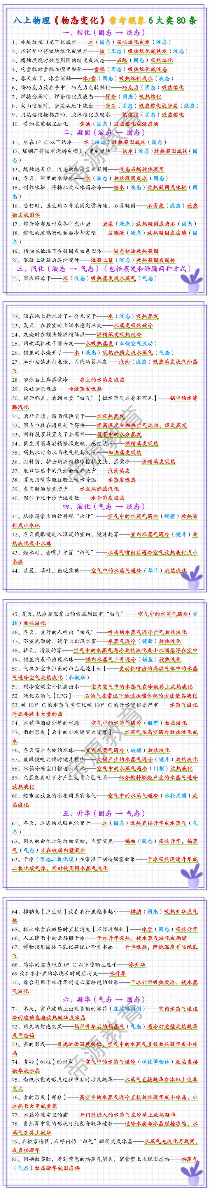 11、水在0°C以下结冰——水(液态)放热凝固成冰(固态)