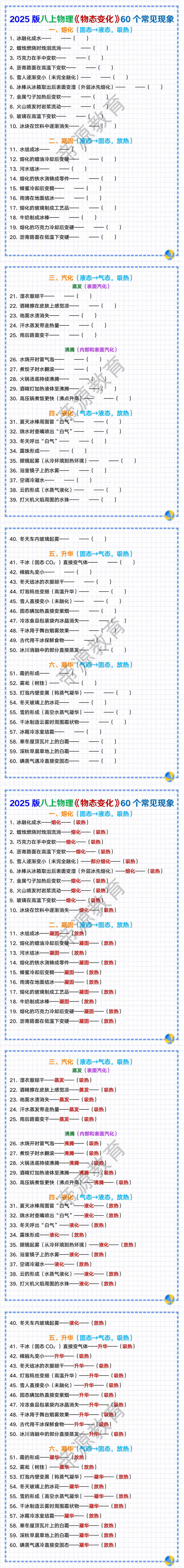 5. 雪人逐渐变小(未完全融化)——放热——(放热)