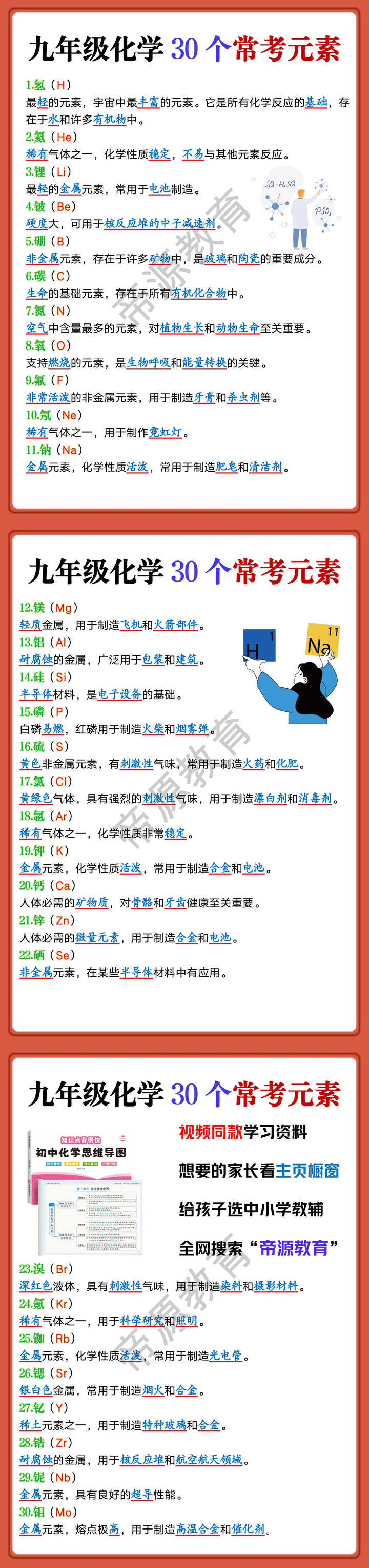 九年级化学30个常考元素