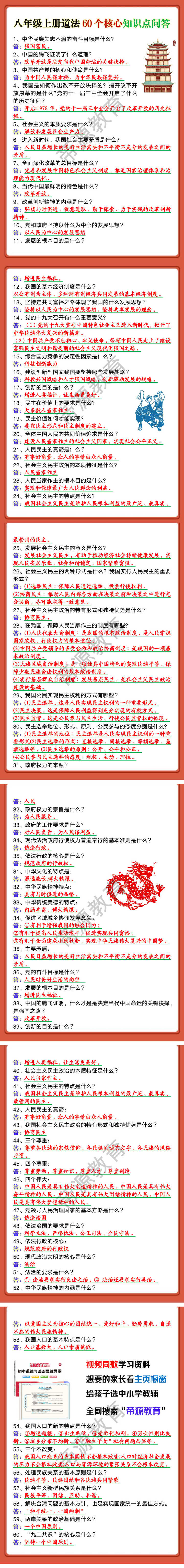八年级上册道法60个核心知识点问答