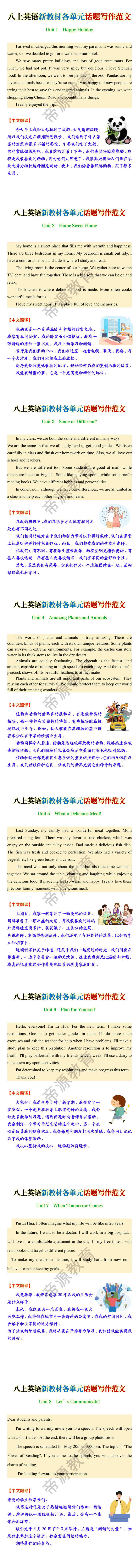 八上英语新教材各单元话题写作范文