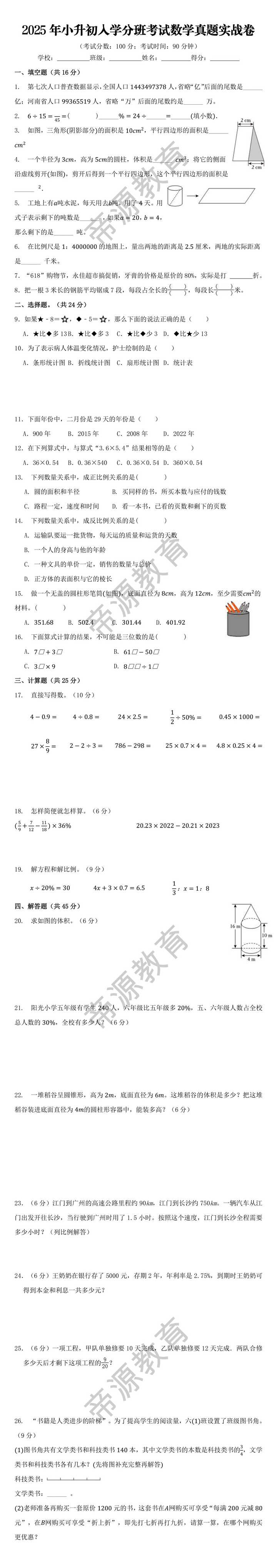 6. 在比例尺是:的地图上,量出两地的距离是厘米,两地的实际距离是______ 千米。