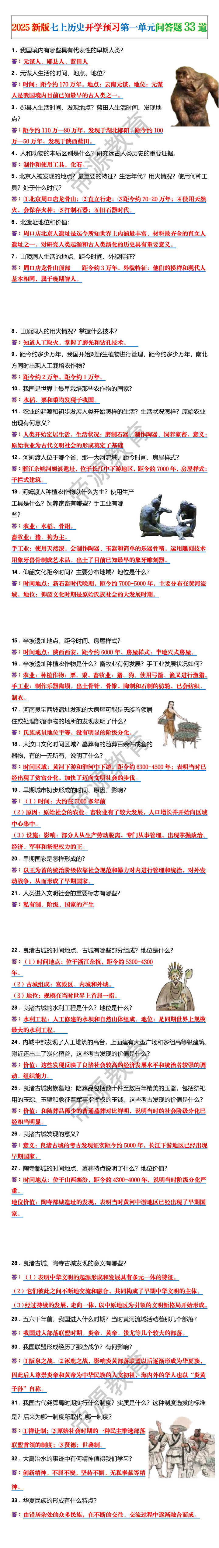 答:①北京周口店龙骨山;②直立行走;③距今约70-20万年;④使用天然火,会保存火种;⑤打制石器;⑥旧石器时代。