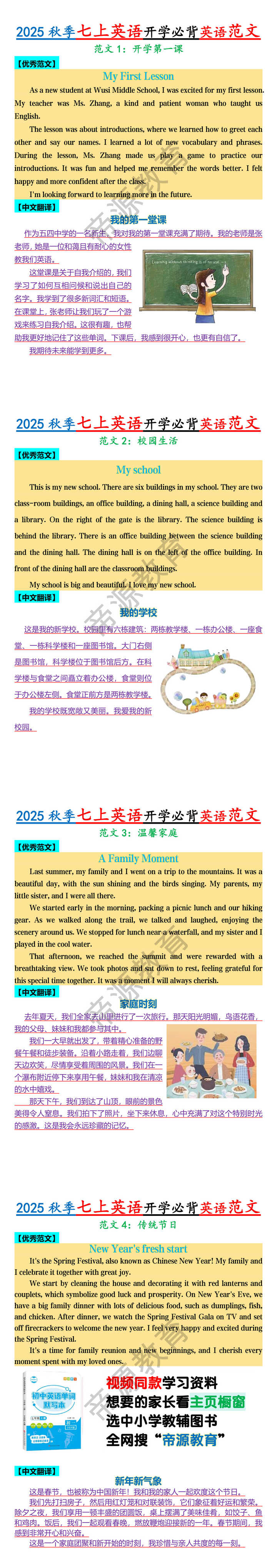 As a new student at Wusi Middle School, I was excited for my first lesson. My teacher was Ms. Zhang, a kind and patient woman who taught us English.