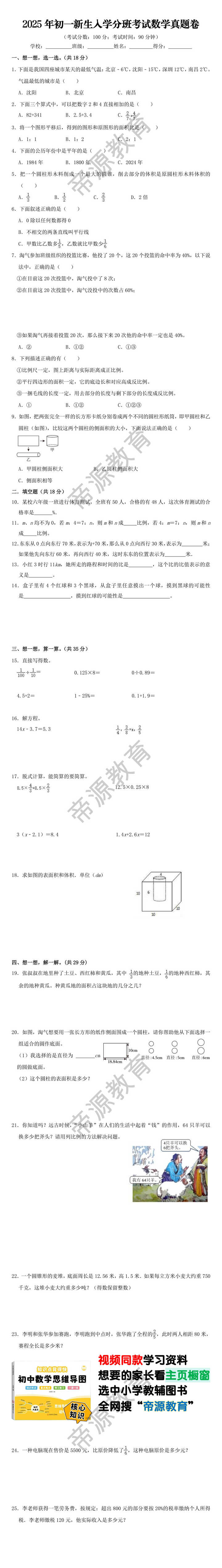 5.把一个圆柱形木料削成一个最大的圆锥,削去部分的体积是原圆柱形木料体积的( )