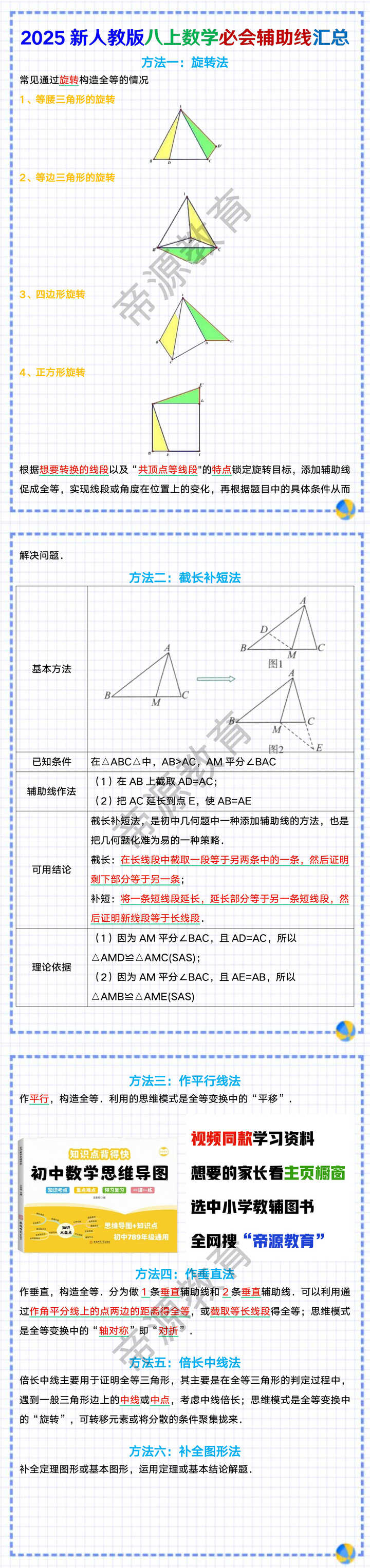 可用结论 截长补短法,是初中几何题中一种添加辅助线的方法,也是把几何题化难为易的一种策略.