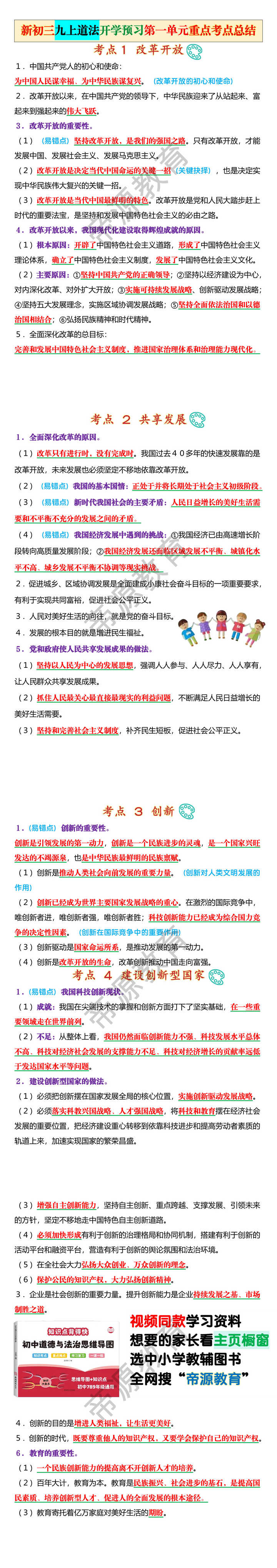 (1)(易错点)坚持改革开放,是我们的强国之路。只有改革开放,才能发展中国、发展社会主义、发展马克思主义。