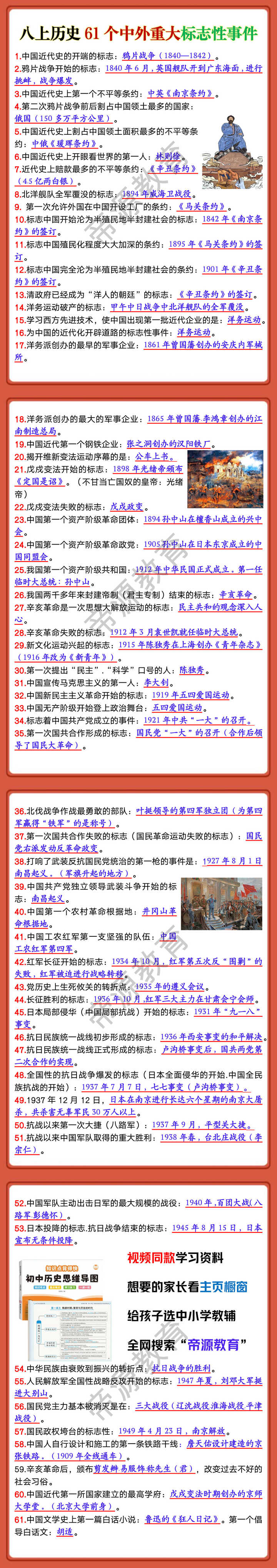 10.标志中国开始沦为半殖民地半封建社会的标志:1842年《南京条约》的签订。
