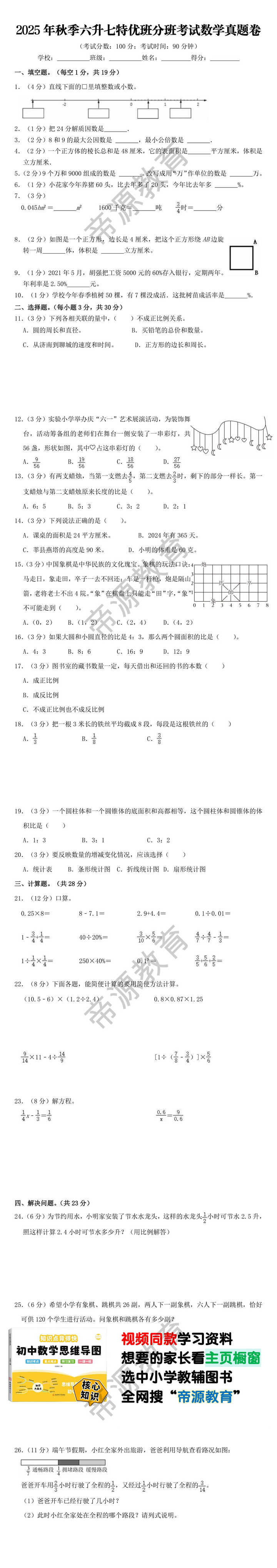 9.(1分)2021年5月,胡强把工资5000元的60%存入银行,定期两年。年利率是2.50% 元。