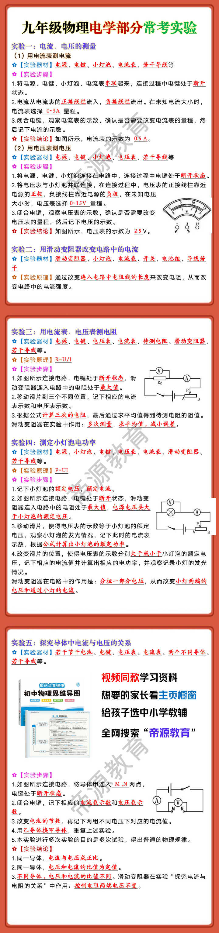 九年级物理电学部分常考实验