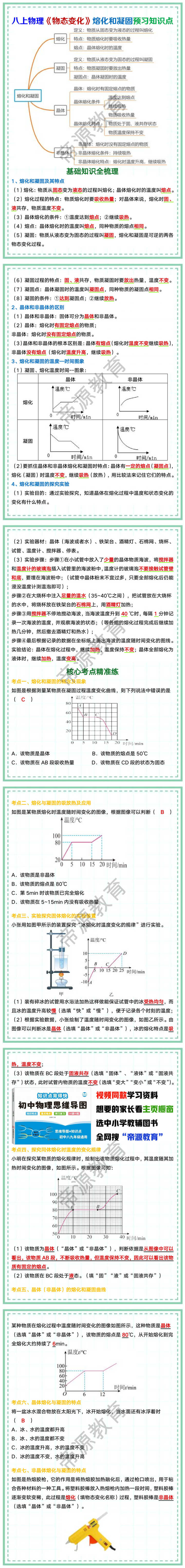 (1)熔化:物质从固态变为液态的过程叫熔化;晶体熔化时的温度叫熔点。