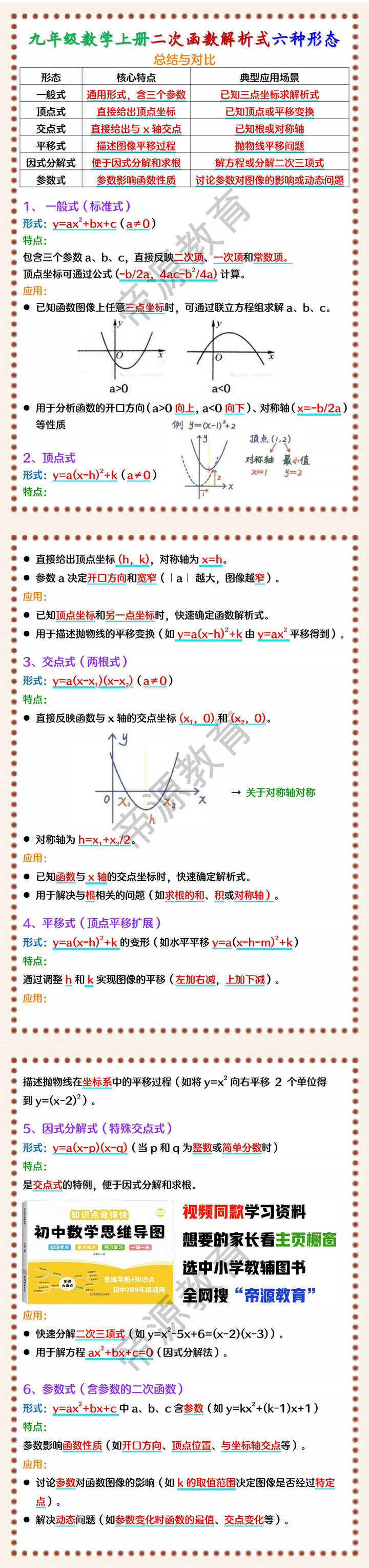 交点式 直接给出与 x 轴交点 已知根或对称轴