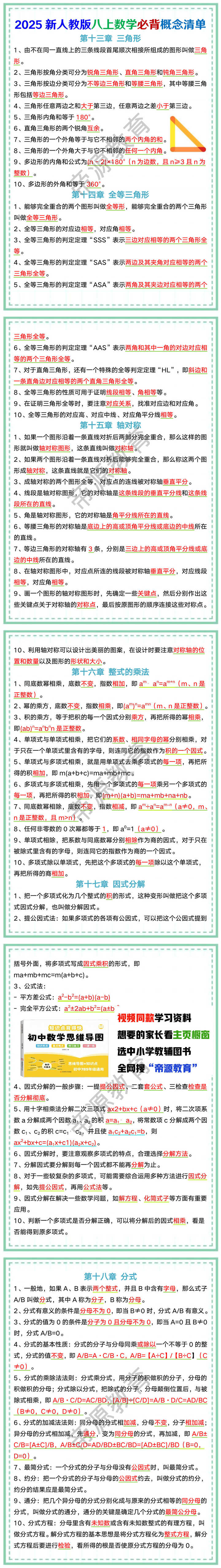 9、多边形的内角和公式为(n - 2)×180°(n为边数,且n≥3且n为整数)。
