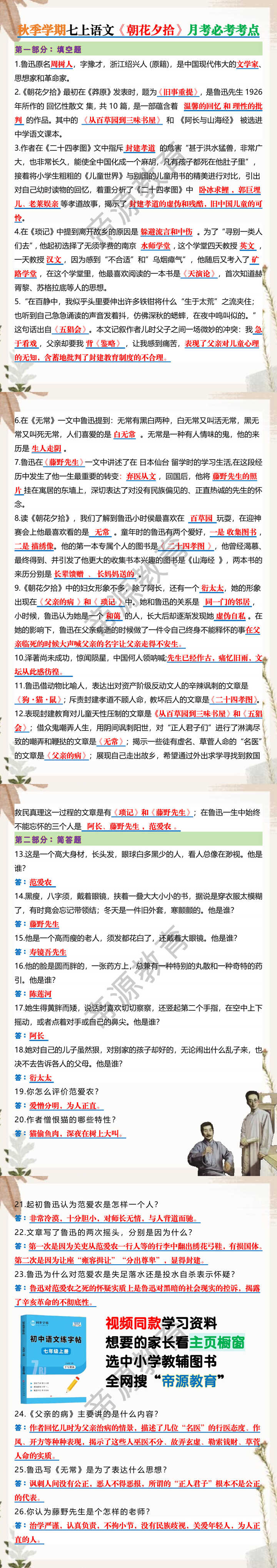 2.《朝花夕拾》最初在《莽原》发表时,题为《旧事重提》,是鲁迅先生1926年所作的 回忆性散文 集,共 10 篇,是一部蕴含着 温馨的回忆 和 理性的批判 的作品。其中的 《从百草园到三味书屋》 和 《阿长与山海经》 被选进中学语文课本。
