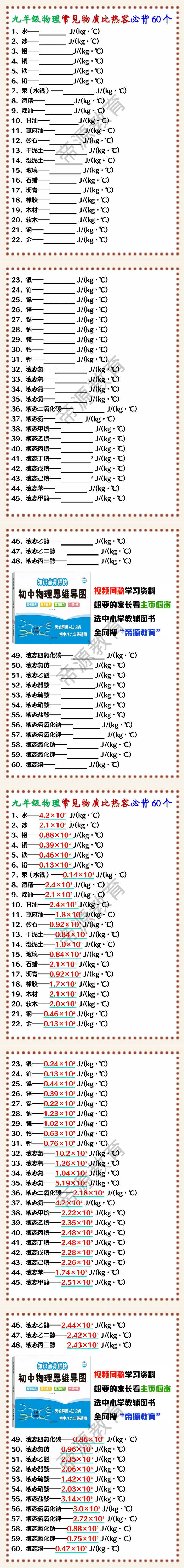 7、汞(水银)——0.14×10³ J/(kg·℃)