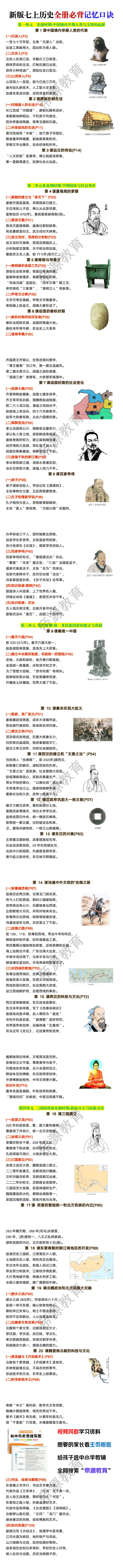 新版七上历史全册必背记忆口诀