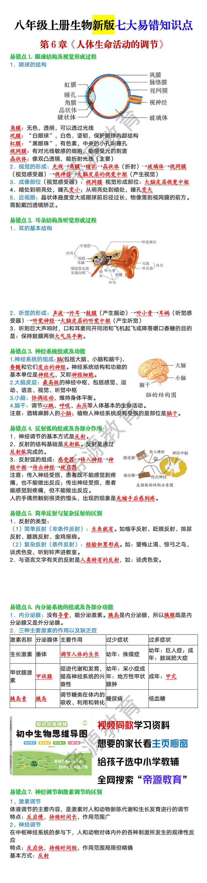 2.视觉的形成:光线→角膜→瞳孔→晶状体(折射)→玻璃体→视网膜(视觉感受器)→视神经→大脑皮层的视觉中枢(产生视觉)