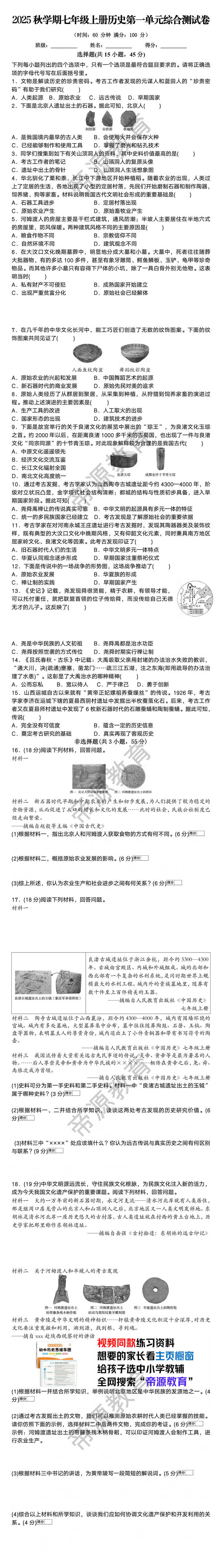 4.华北驯化了粟和黍,长江中下游地区开始种植稻。随着农业的出现,人类过上了定居的生活,各地出现了小型的定居村落,先民们开始磨制石器和制作陶器,饲养猪、狗等家畜。材料说明我国古代文明社会形成的重要基础是( C )