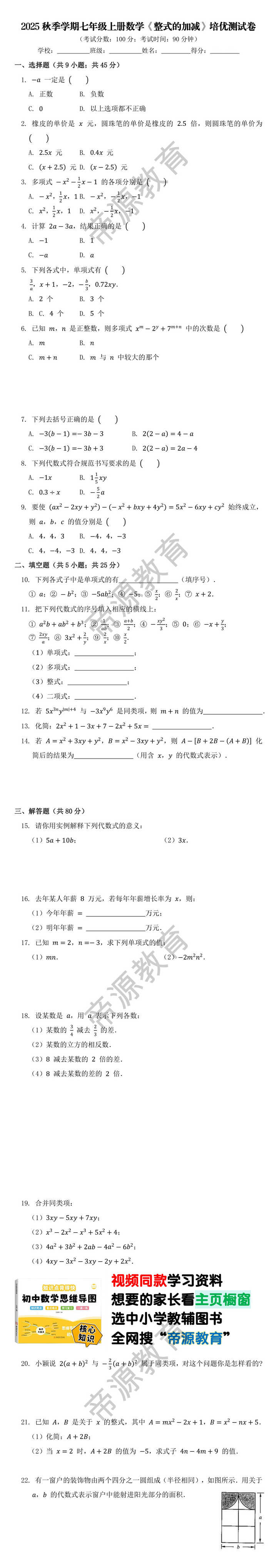 2. 橡皮的单价是 元,圆珠笔的单价是橡皮的 倍,则圆珠笔的单价为