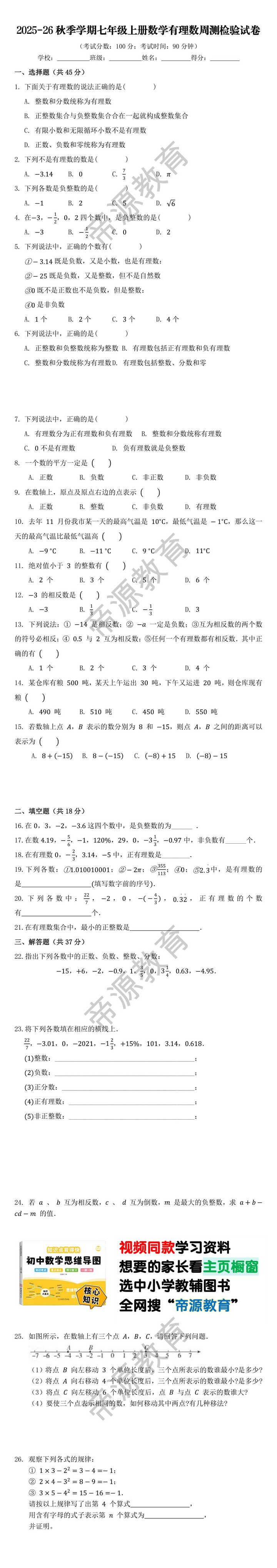 4.在,,,四个数中,是负整数的是( )