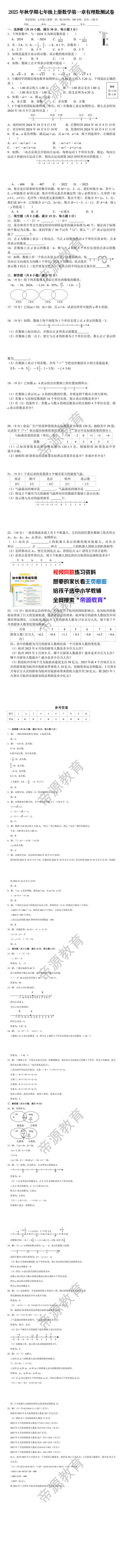 考试范围:七年级上册第一章;练习时间:100分钟;总分:120分