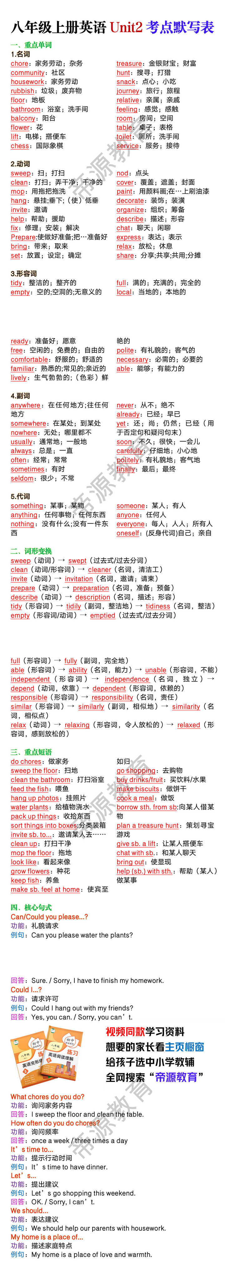 八年级上册英语Unit2考点默写表