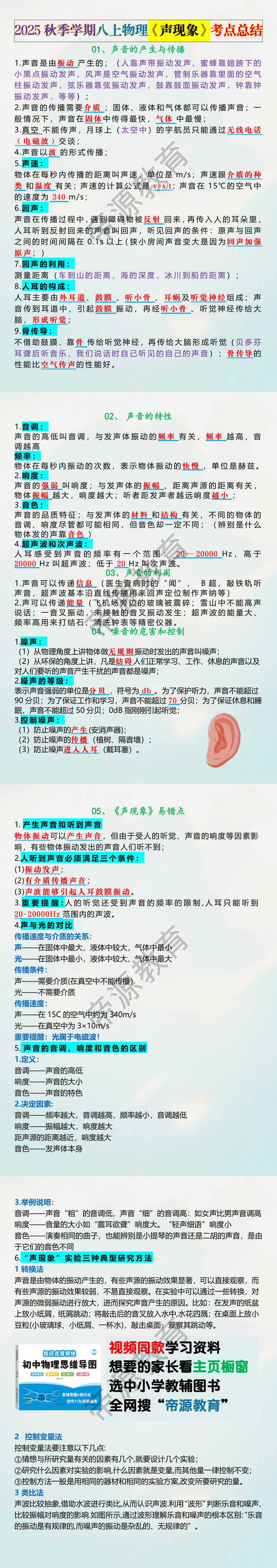 1.声音是由振动 产生的;(人靠声带振动发声、蜜蜂靠翅膀下的小黑点振动发声,风声是空气振动发声,管制乐器靠里面的空气柱振动发声,弦乐器靠弦振动发声,鼓靠鼓面振动发声,钟靠钟振动发声,等等);