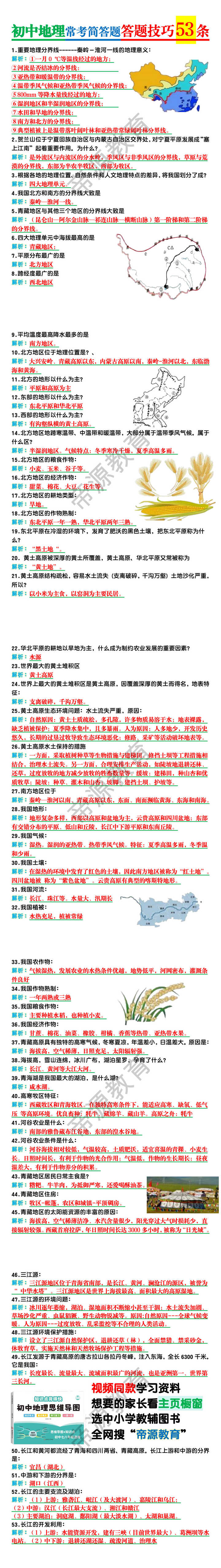 1.重要地理分界线------秦岭-淮河一线的地理意义: 解析:①一月0 ℃等温线经过的地方; ②河流是否结冰的分界线: ③亚热带和暖温带的分界线; ④温带季风气候和亚热带季风气候的分界线; ⑤800mm等降水量线经过的地方; ⑥湿润地区和半湿润地区的分界线; ⑦水田和旱地的分界线; ⑧南方和北方的分界线; ⑨典型植被上是温带落叶阔叶林和亚热带常绿阔叶林分界线。 2.贺兰山位于宁夏回族自治区与内蒙古自治区交界处,对宁夏平原发展成“塞上江南”起着重要作用。为什么? 解析:是外流区与内流区的分水岭,季风区与非季风区的分界线,草原与荒漠的分界线,东部为半农半牧区,西部为牧区。 3.根据各地的地理位置、自然条件和人文地理特点的差异,将我国划分了成? 解析:四大地理单元。 4.我国北方和南方的分界线大致是