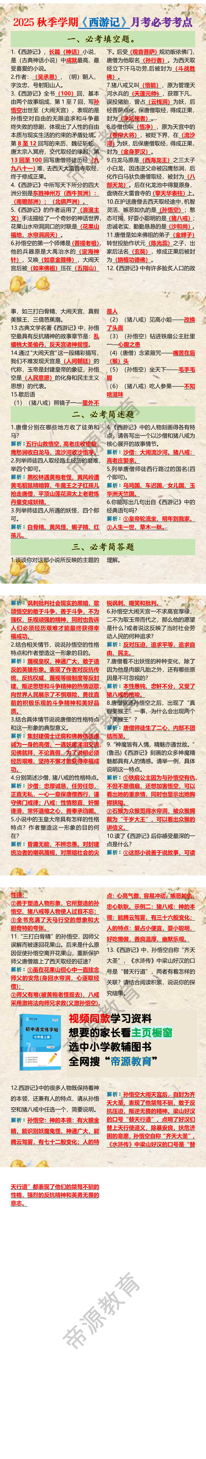 1.《西游记》,长篇(神话)小说,是(古典神话小说)中成就最高、最受喜爱的小说。