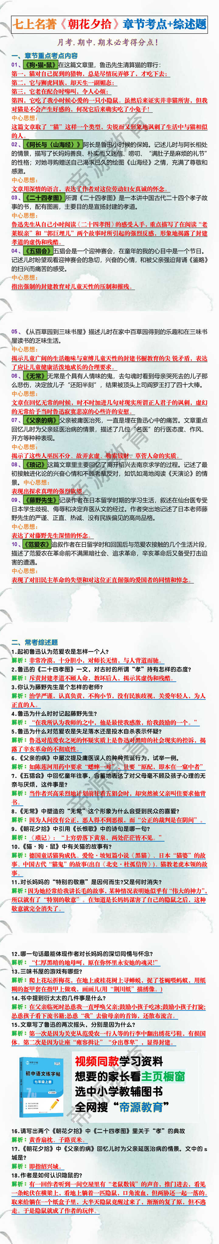 02、《阿长与〈山海经〉》阿长是鲁迅小时候的保姆。记述儿时与阿长相处的情景,描写了长妈妈善良、朴实而又迷信、唠叨、“满肚子是麻烦的礼节”的性格;对她寻购赠送自己渴求已久的绘图《山海经》之情,充满了尊敬和感激。