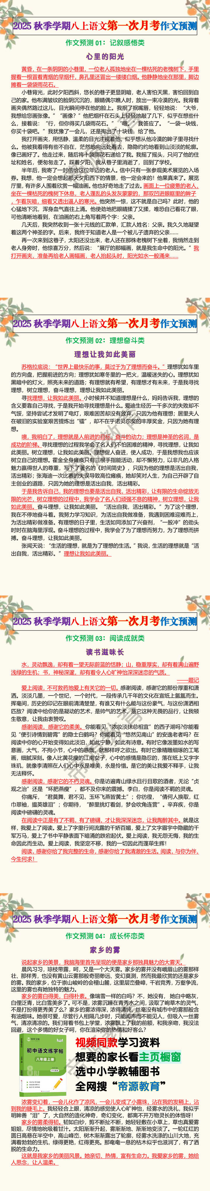 作文预测01:记叙感悟类
