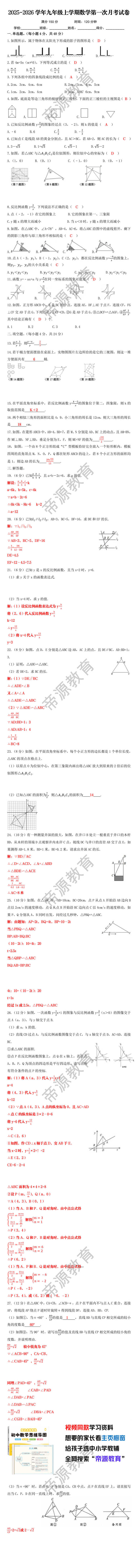2025-2026学年九年级上学期数学第一次月考试卷