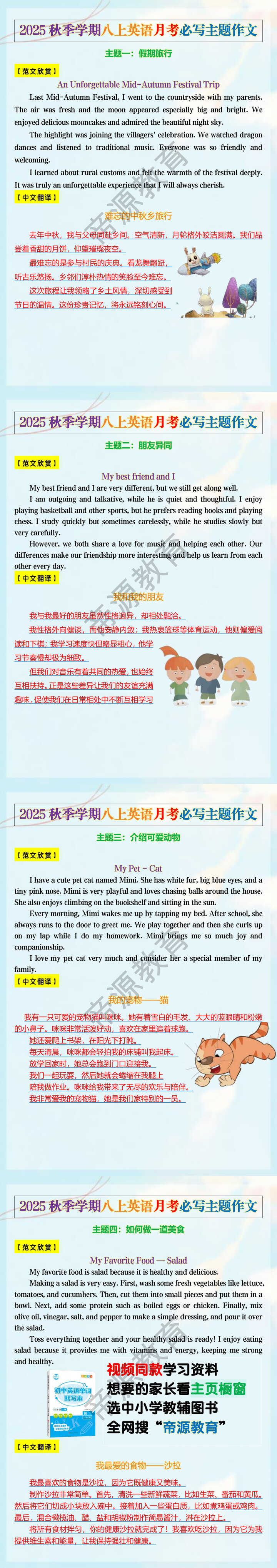 Last Mid-Autumn Festival, I went to the countryside with my parents. The air was fresh and the moon appeared especially big and bright. We enjoyed delicious mooncakes and admired the beautiful night sky.