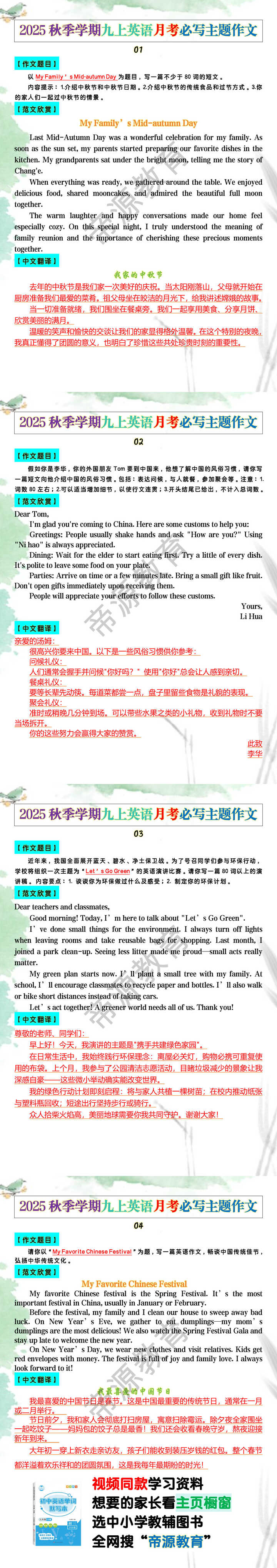 以My Family’s Mid-autumn Day为题目,写一篇不少于80词的短文。