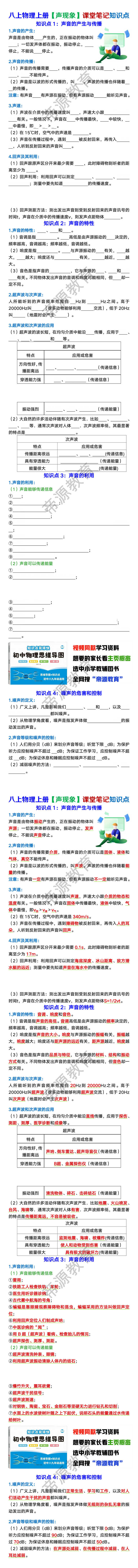 (2)声音是以波的形式传播的,叫声波。声波的传播也伴随着能量的传播。