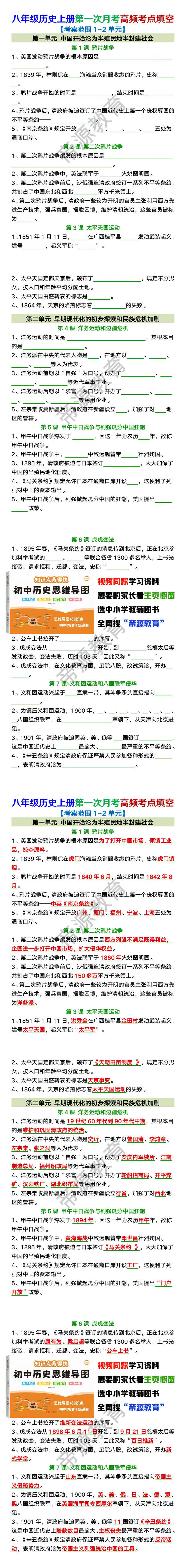 八年级历史上册第一次月考高频考点填空 【考察范围1~2单元】