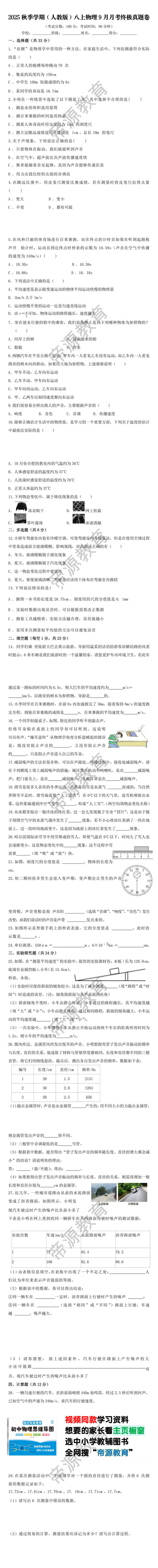 2025秋季学期(人教版)八上物理9月月考终极真题卷